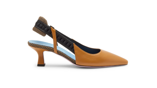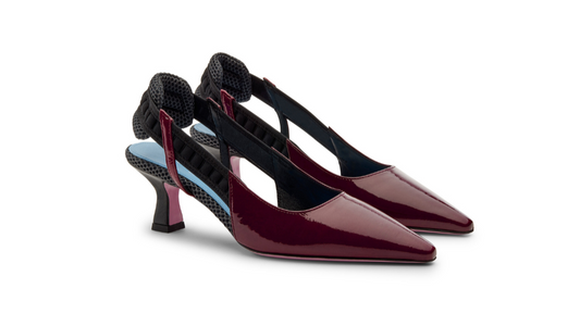 L'iconico tacco zeppa è il dettaglio che ne definisce l'identità.