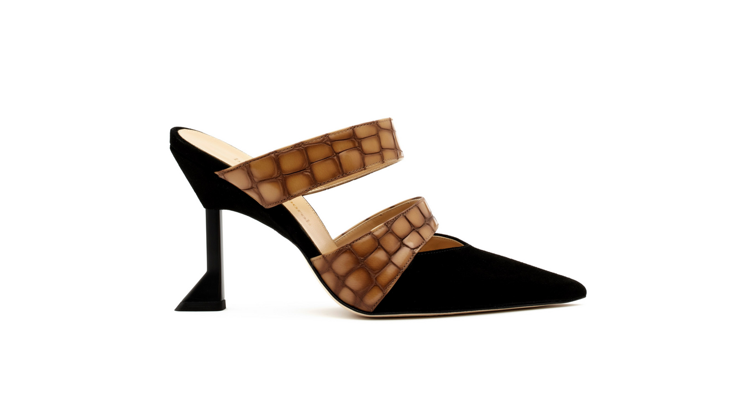 The Mya Nero women's clog adds a subtle touch of refined extravagance to your outfit. Handmade, entirely Made in Italy, this shoe stands out thanks to the sensual straps that wrap around the ankle. Always present is the iconic 90mm wedge heel: the mini wedge offers daily comfort and practicality, while the customized heel gives the shoe a modern twist and a fresh contemporary look. Since this part is not covered in leather, it won’t wear out over time!