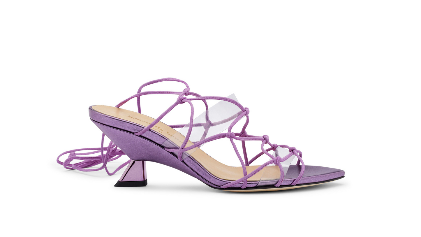 The women's sandal Olga in lilac is perfect for social events and dancing nights. Its unmistakable design is made charming by the thin suede laces that, forming a knot pattern, give the shoe the style of ancient Greece. The PVC straps allow the sandal to be worn practically, without having to tie and adjust the laces with every wear. Moreover, they help the foot maintain its silhouette thanks to their supportive function.