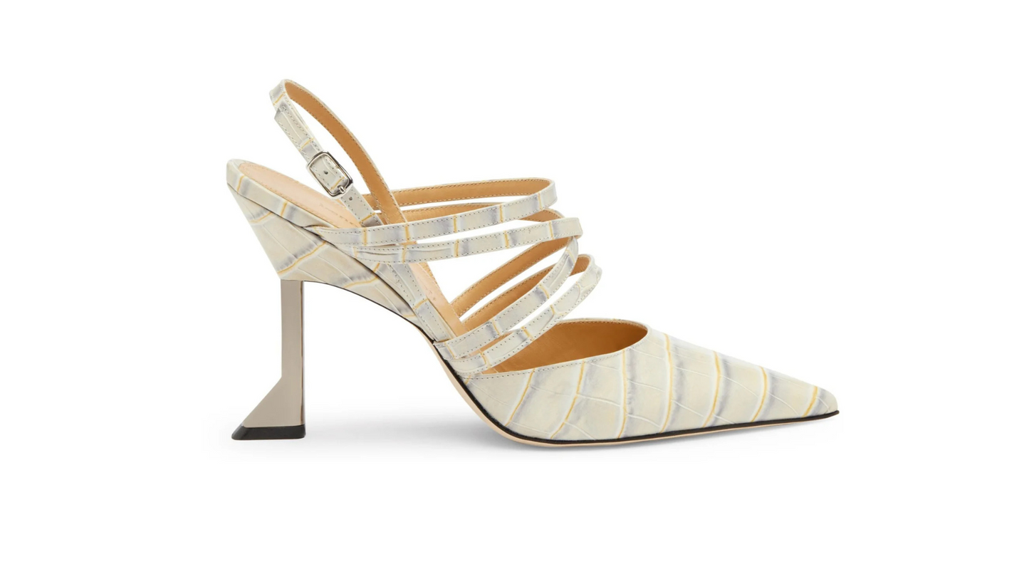 The Molly luxury slingback, with its elegant silhouette, is handmade, completely Made in Italy. The model is made fascinating by the thin laces that gently wrap the foot. Our iconic wedge heel is not missing in the 90mm version, made up of two parts: the small wedge that gives comfort and daily practicality, while the heel gives the shoe a modern twist and a new look in a contemporary key. Since this last part is not covered in leather, it does not get damaged over time! It is the perfect shoe to wear both day and evening for impeccable style.