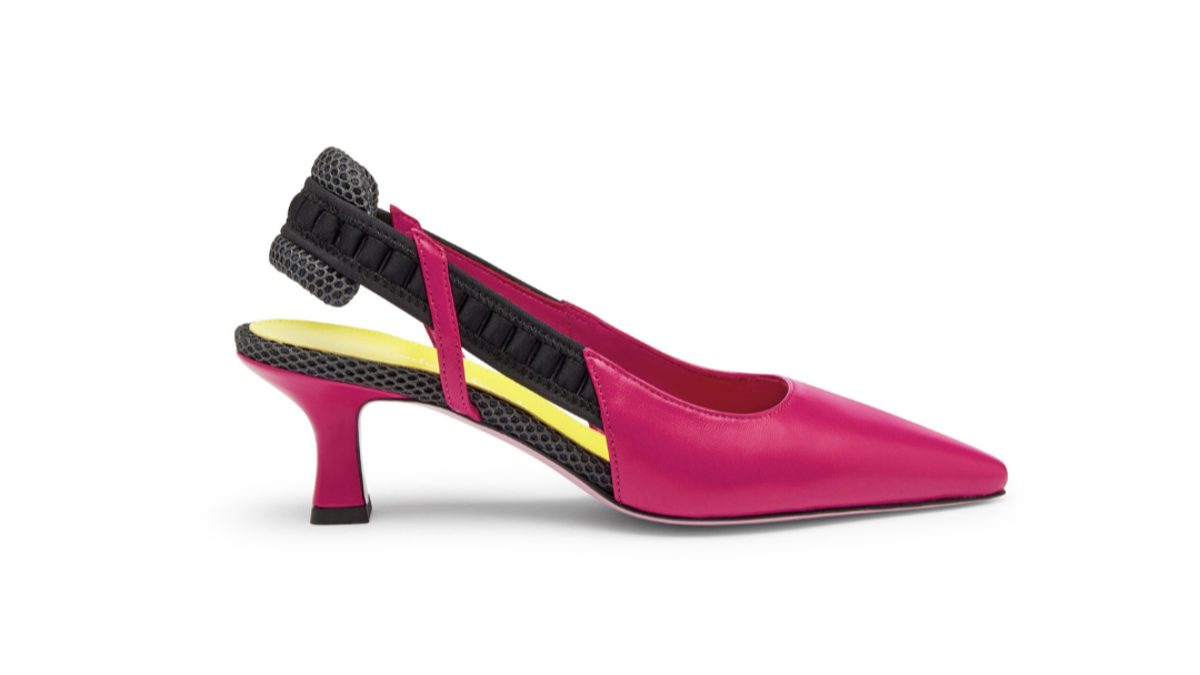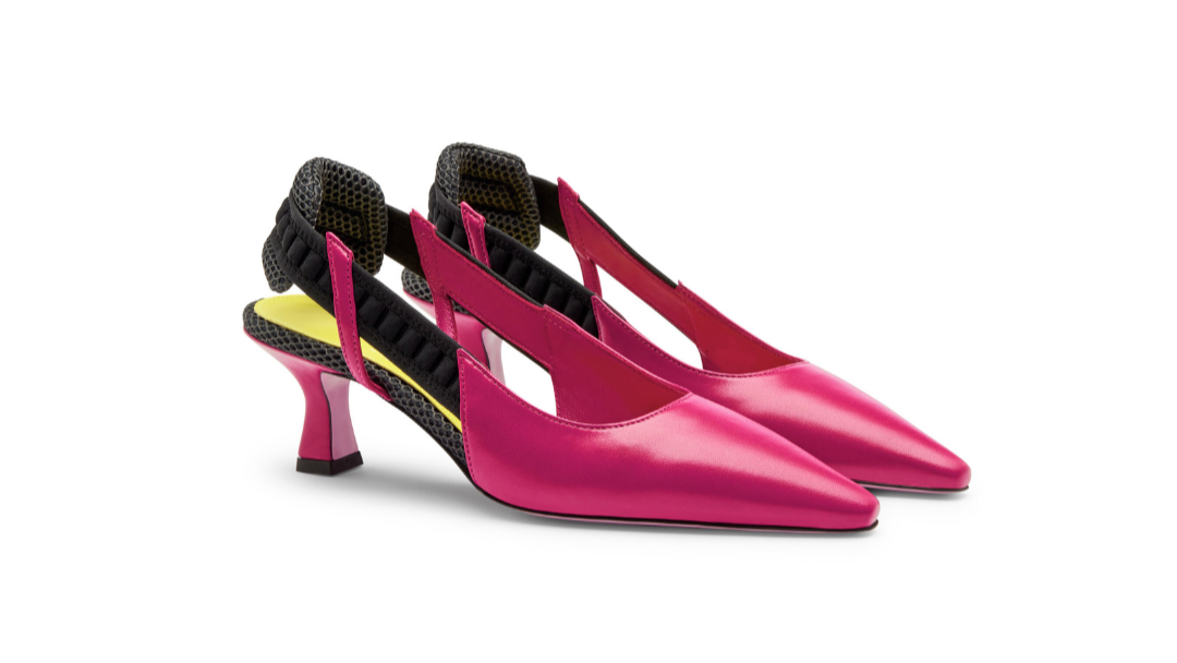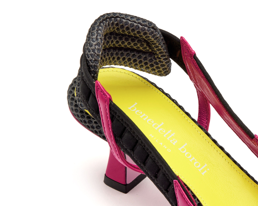 Slingback with pointed toe in magenta nappa leather. The heel is finished with a neoprene insert that ensures prolonged comfort and stability while walking. The 65 mm heel provides a balanced height, designed for everyday and dynamic elegance.