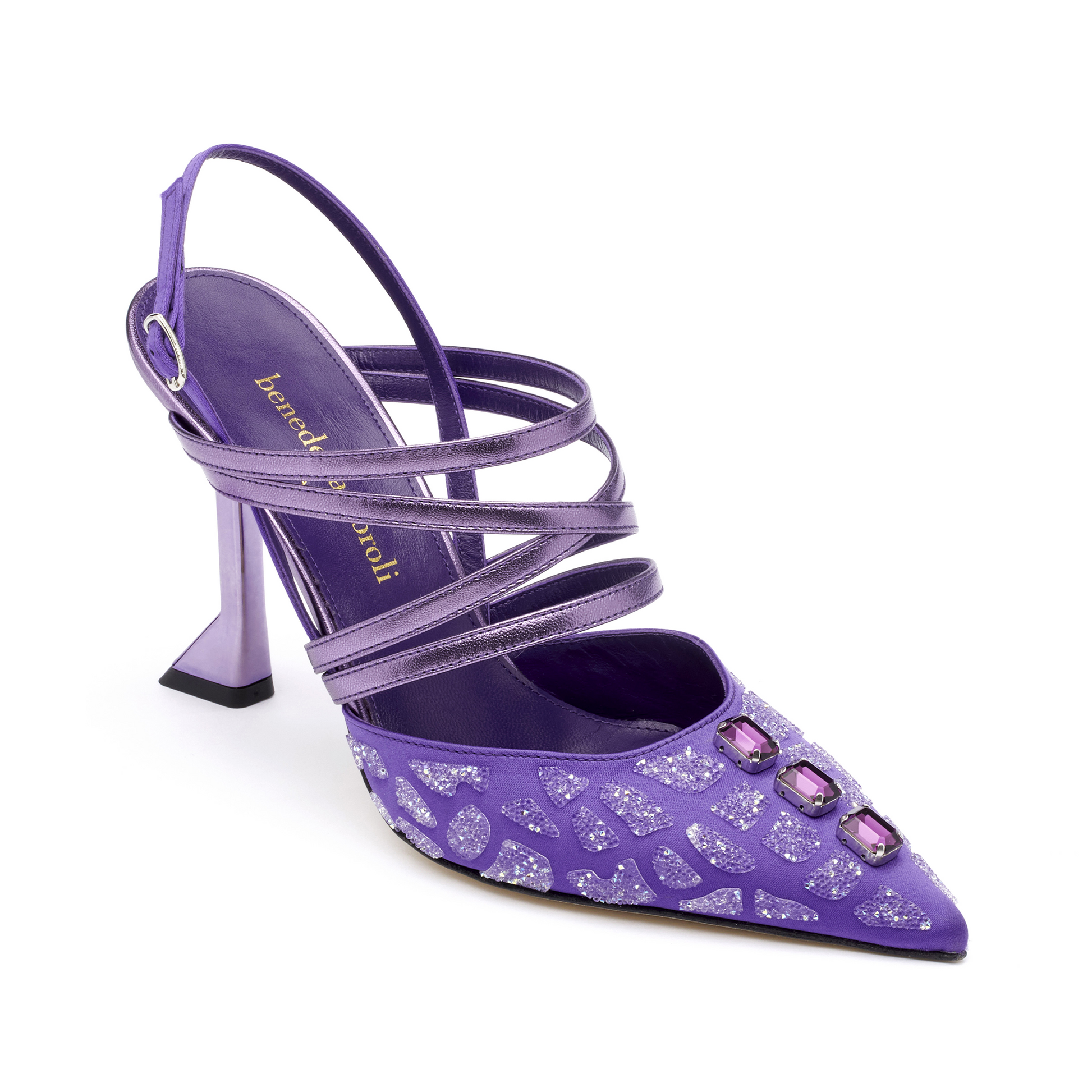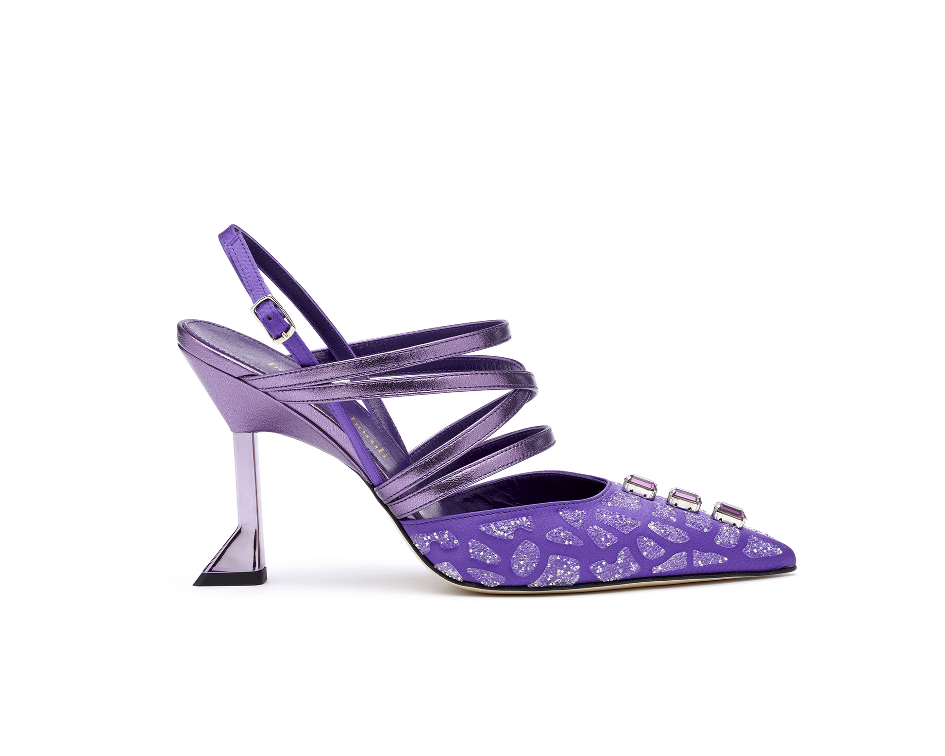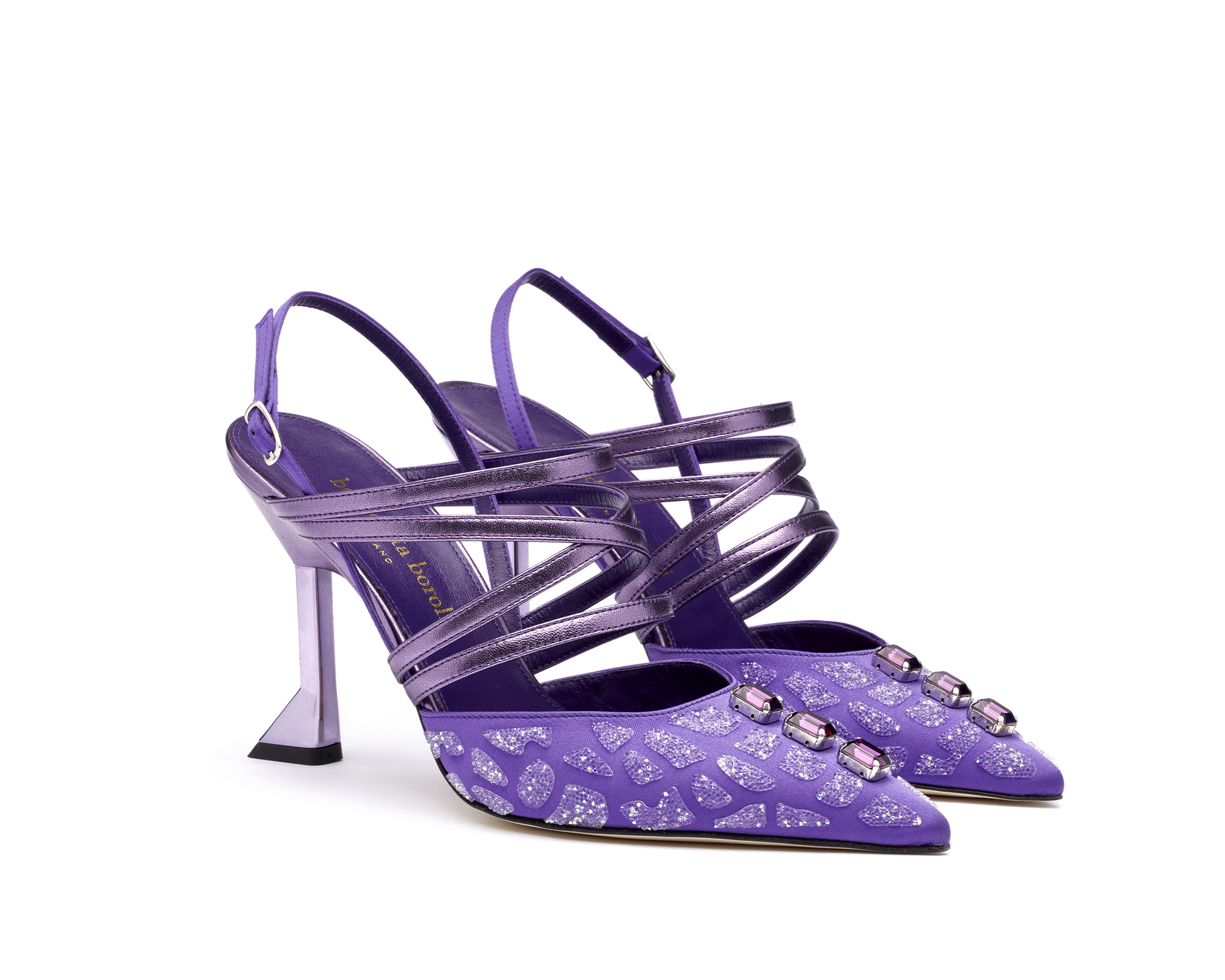 럭셔리 슬링백 몰리 바이올렛은 우리를 꿈꾸게 합니다: 독특하고 오리지널하며, 스와로브스키 크리스털로 장식되어 있습니다. 완전히 이탈리아산으로, 고급 새틴 갑피에 스와로브스키 마이크로 크리스털로 제작된 악어 무늬 프린트가 추가되었습니다. 프린트의 각 얼룩은 숙련된 장인들이 손으로 하나하나 붙였습니다. 갑피를 완성하는 세 개의 보석은 중앙에 손으로 박아 빛을 더합니다. 가느다란 끈은 발을 부드럽게 감싸고, 버클이 달린 스트랩이 착용감을 지지합니다. 우리의 아이코닉 웨지 힐은 두 부분으로 구성되어 있습니다: 미니 웨지는 편안함과 일상적인 실용성을 제공하며, 힐은 신발에 현대적인 감각과 새로운 컨템포러리 룩을 부여합니다. 후자의 부분은 가죽으로 덮여 있지 않아 시간이 지나도 손상되지 않습니다!