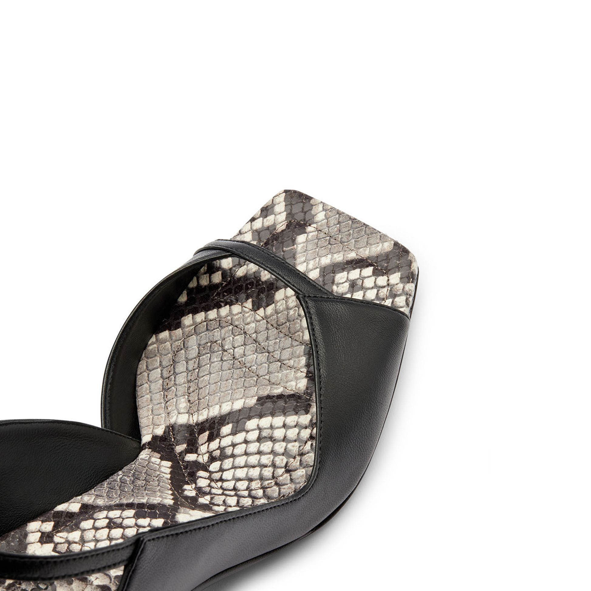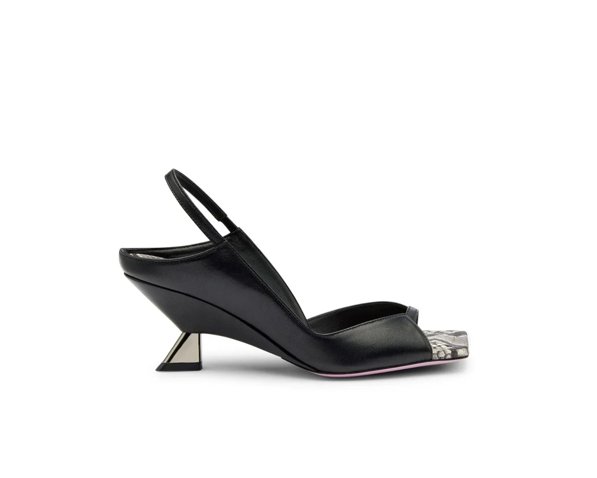 검은색 나파 가죽의 스퀘어 토 여성 샌들로, 모던하고 다재다능한 스타일에 이상적입니다. 쿠션이 있는 밑창은 장시간 편안함을 제공하며, 뒤꿈치의 탄력 있는 인서트는 안정감과 완벽한 착용감을 보장합니다. 65mm 웨지 힐은 모든 상황에서 지지력과 우아함을 제공합니다.