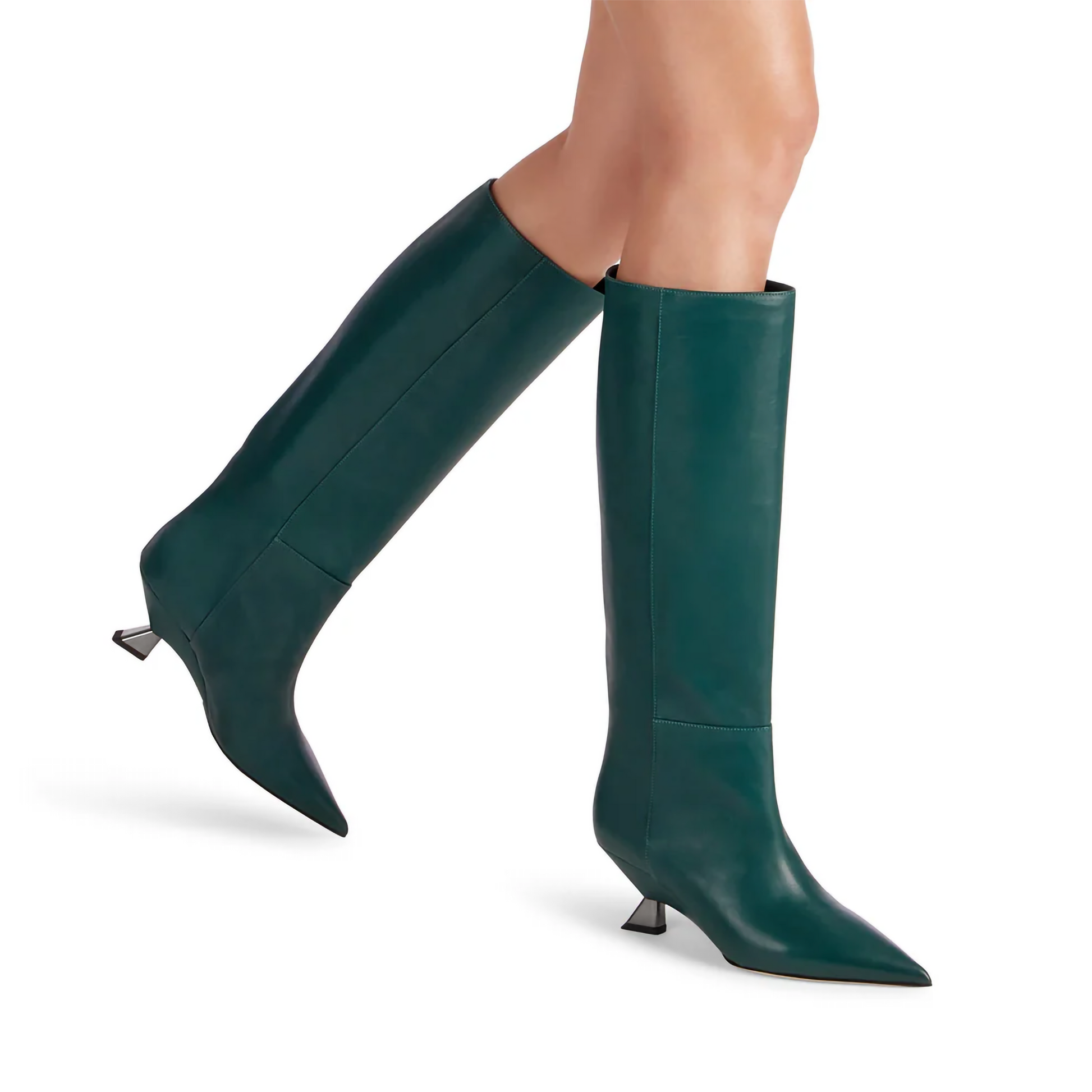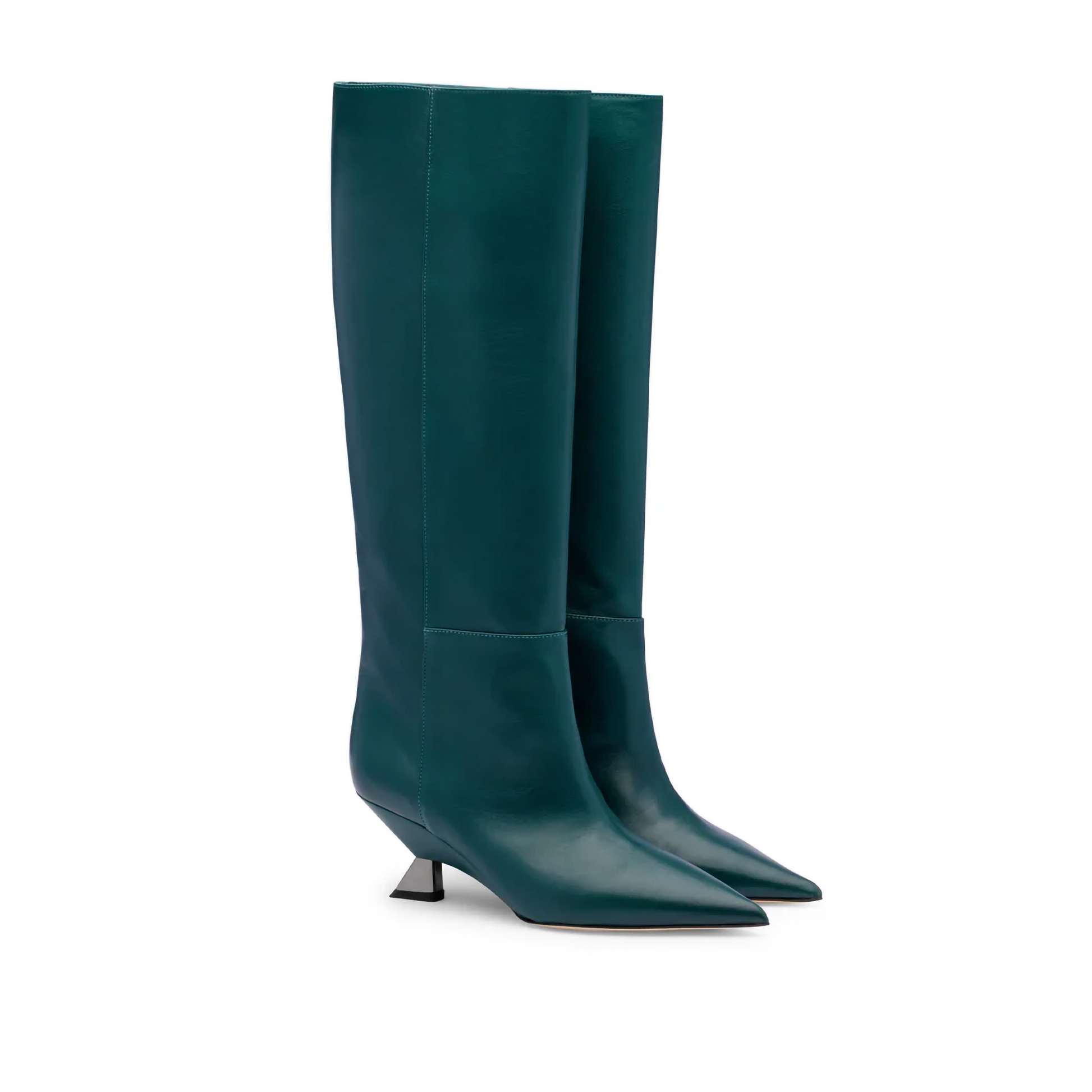 65mm 웨지 굽과 뾰족한 앞코가 특징인 페트롤리오 나파 가죽 부츠로, 현대적이고 자연스러운 우아함을 위해 디자인되었습니다. 지퍼가 없는 튜브형 부츠통은 즉각적인 착용감을 보장하며, 옆면의 솔기는 구조감과 개성을 더합니다. 웨지 굽은 실루엣에 균형과 활력을 부여하여, 강렬한 개성을 지닌 이 모델을 현대적인 디자인의 완벽한 조합으로 만듭니다.