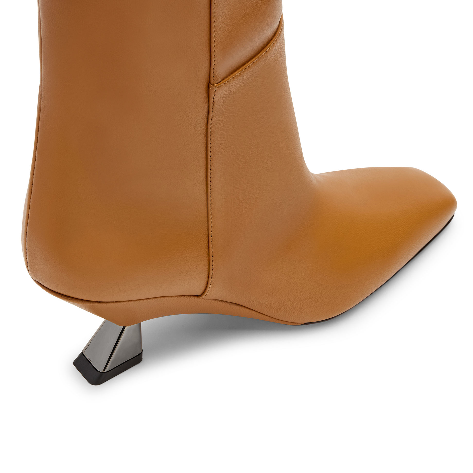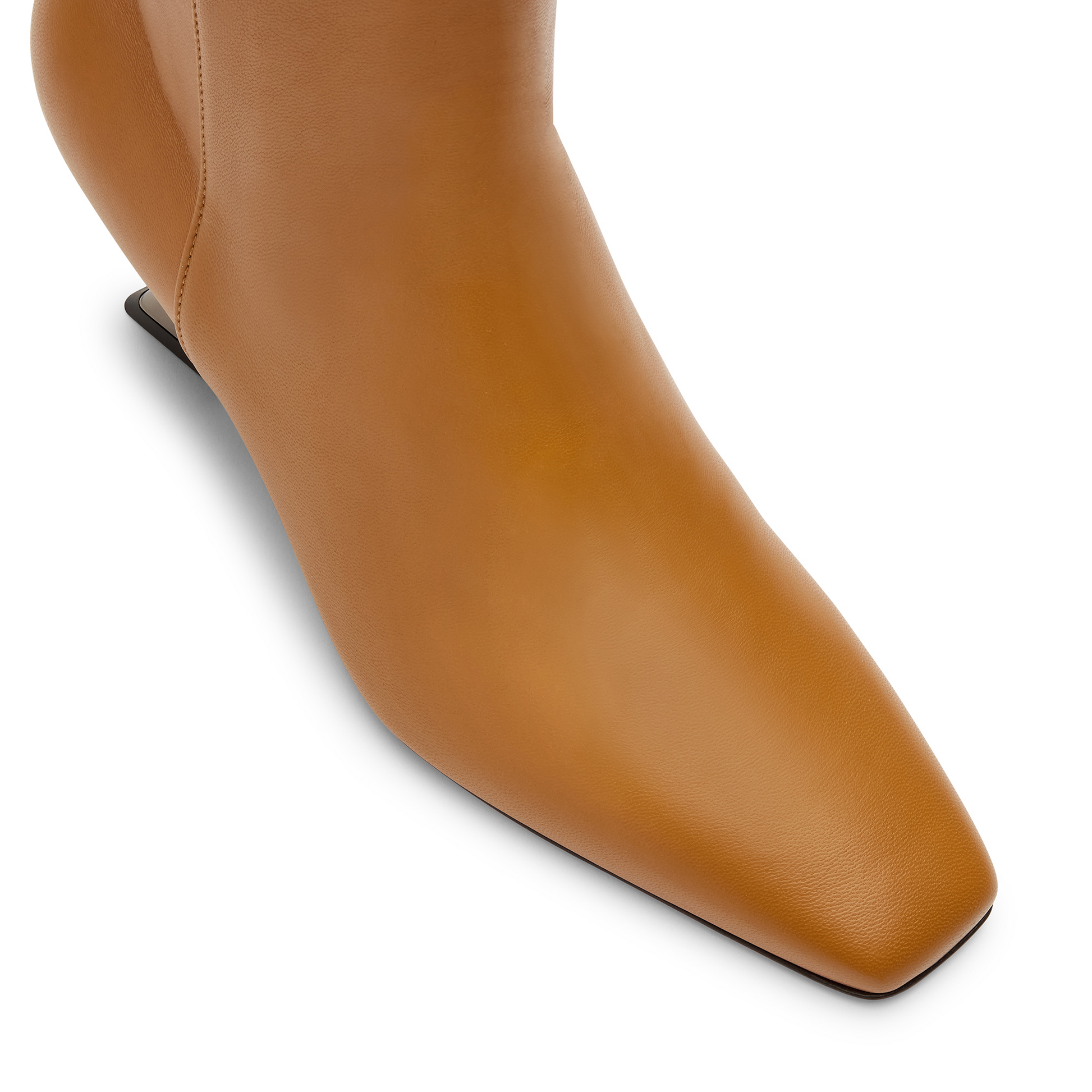 스퀘어 토와 65mm 웨지 힐이 있는 헤이즐넛 나파 가죽 부츠로, 현대적이고 세련된 우아함을 위해 디자인되었습니다. 지퍼가 없는 튜브형 부츠통은 즉각적인 착용감을 보장하며, 옆면의 솔기는 구조감과 개성을 더해줍니다. 웨지 힐은 실루엣에 균형과 활력을 부여하여, 강렬한 개성의 이 모델을 현대적인 디자인의 완벽한 조합으로 만듭니다.