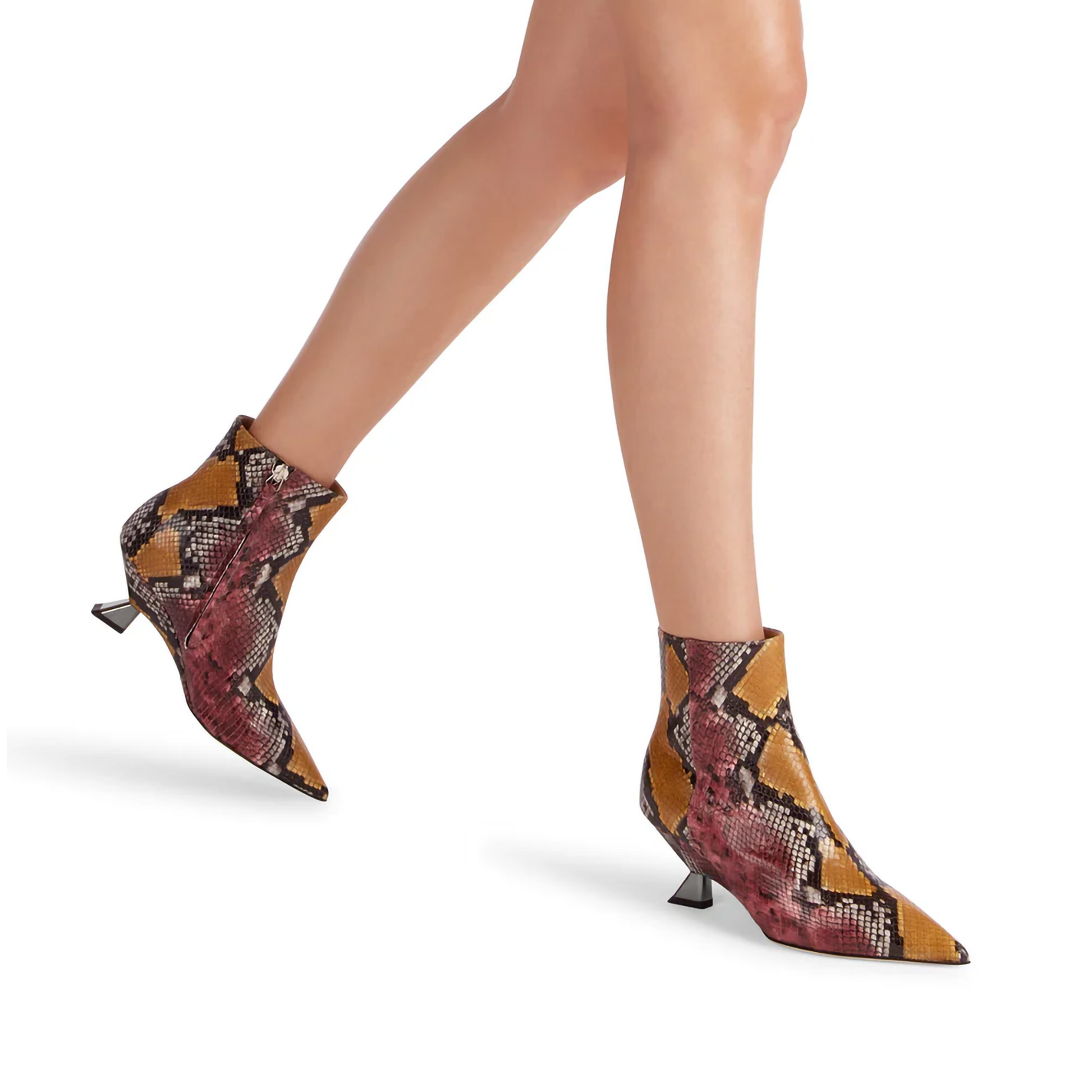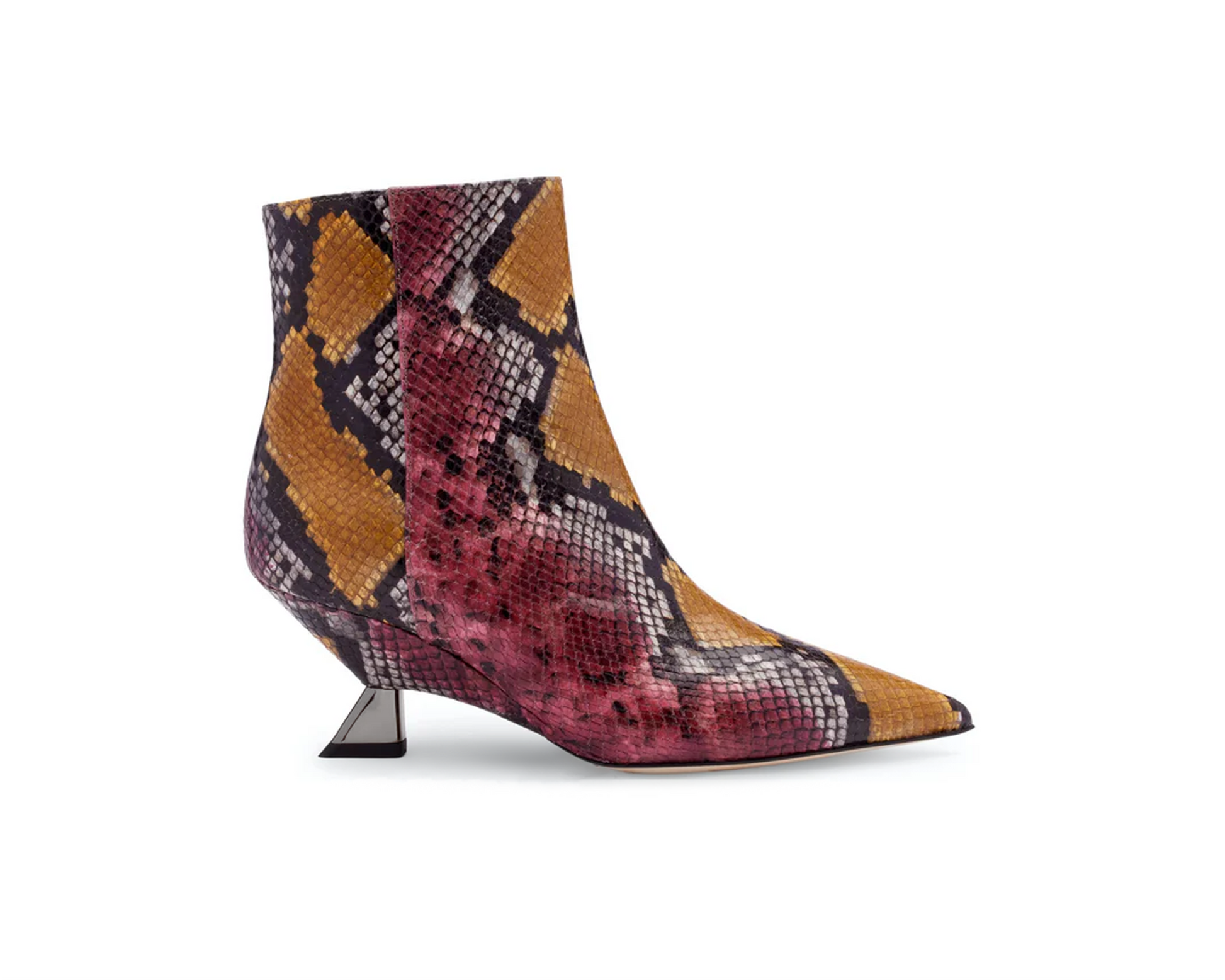 뱀피 프린트 앵클 부츠로 뾰족한 앞코와 65mm 웨지 힐이 특징이며, 현대적이고 세련된 우아함을 위해 디자인되었습니다. 옆면 지퍼 클로저는 실용적이고 편안한 착용감을 보장하며, 웨지 힐은 실루엣에 균형과 활력을 더해줍니다. 현대적인 디자인, 일상적인 편안함, 그리고 시대를 초월한 스타일을 결합한 강렬한 개성의 모델입니다.