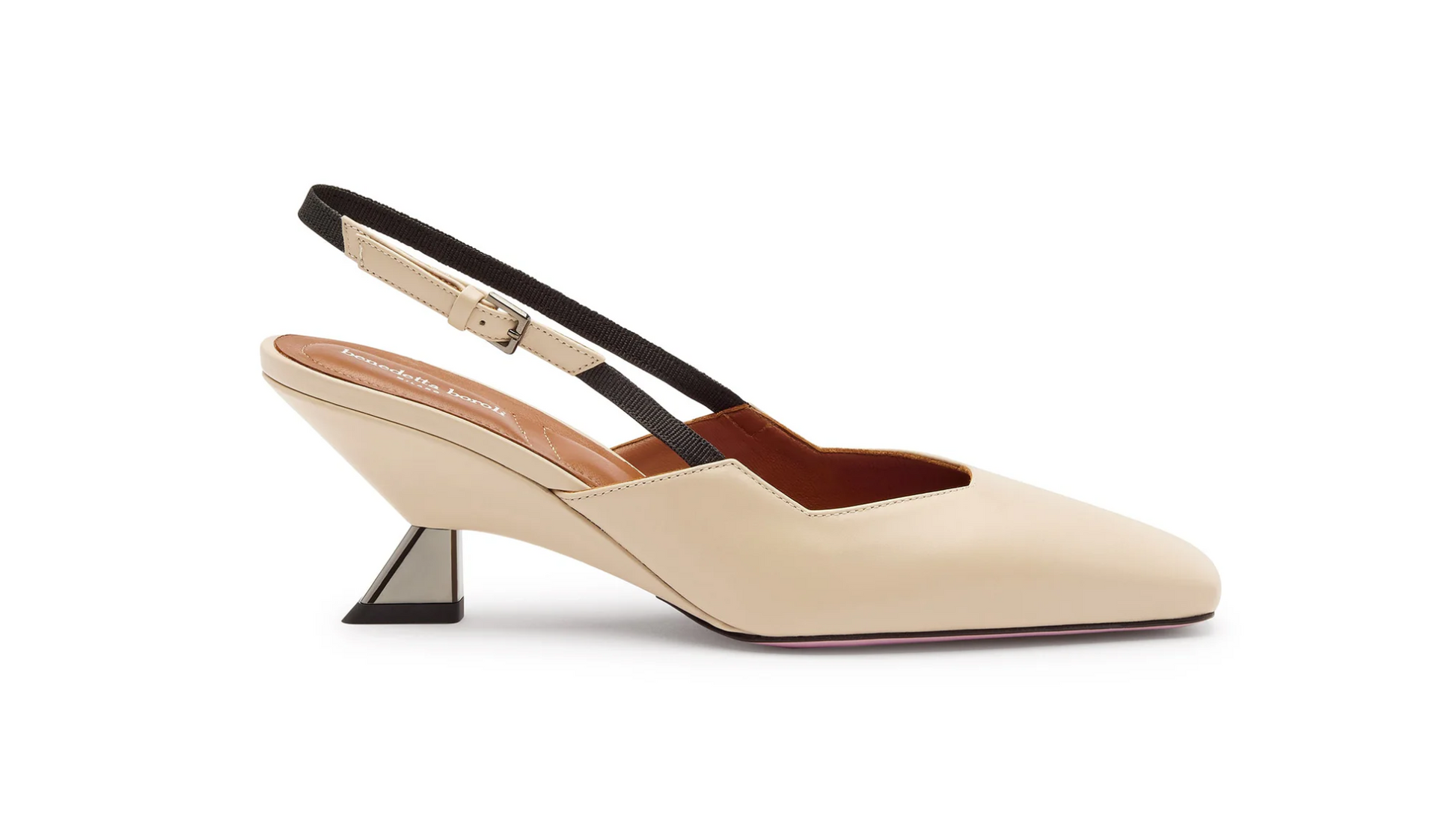 고전적이고 세련된 라인이 특징인 슬링백 소피아는 안전하고 편안한 착용감을 보장하는 섬세한 스트랩을 가지고 있습니다.