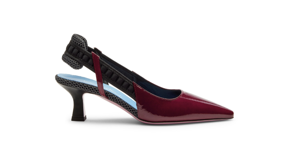 버건디 에나멜 소재의 뾰족한 슬링백입니다. 뒤꿈치는 네오프렌 인서트로 마감되어 장시간 착용 시에도 편안함과 안정성을 보장합니다. 65mm 굽은 일상적이고 역동적인 우아함을 위해 균형 잡힌 높이를 제공합니다.