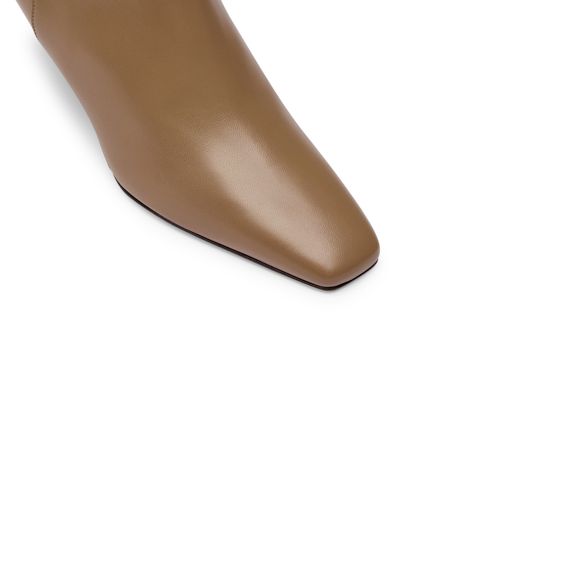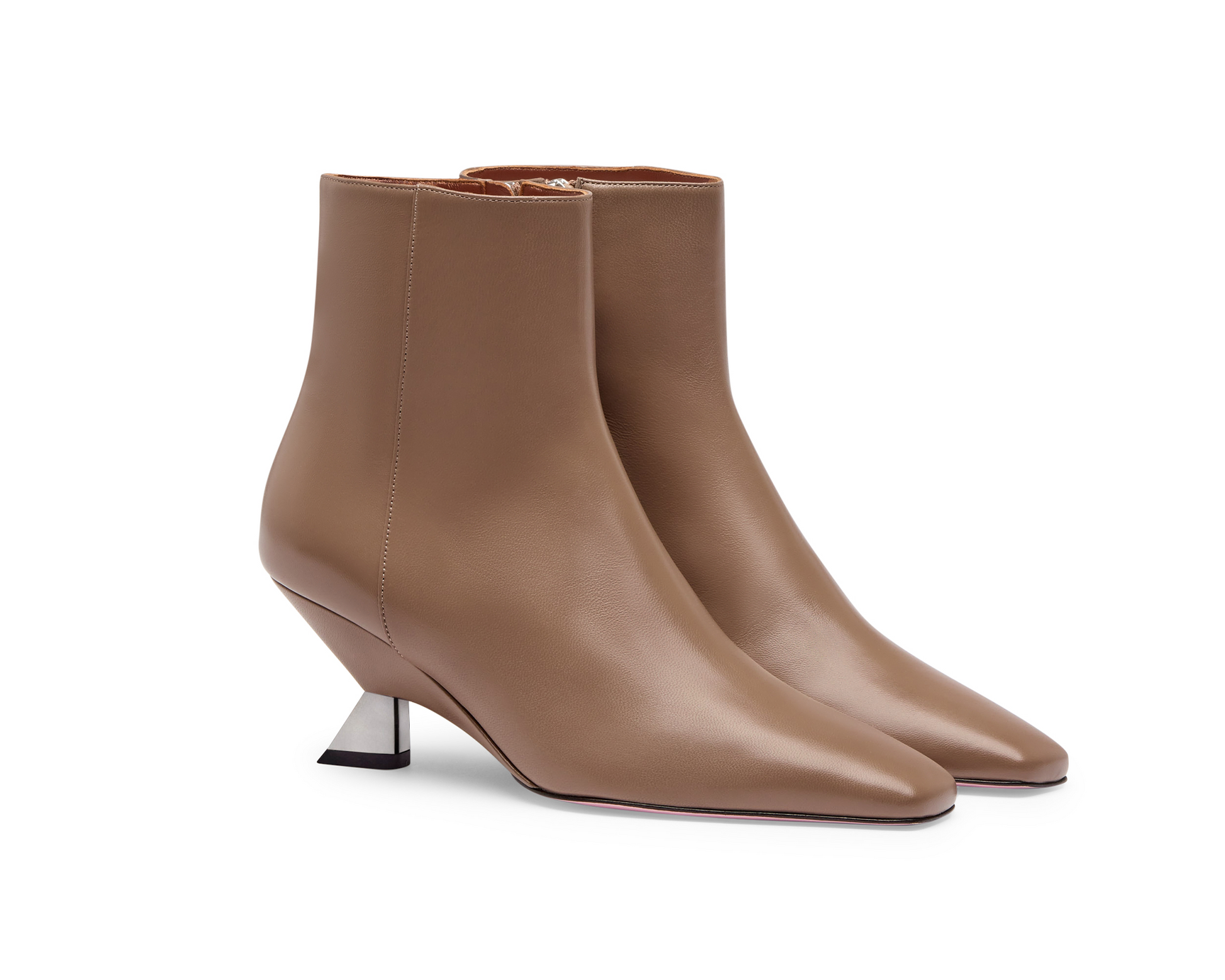 모던하고 세련된 우아함을 위해 디자인된 65mm 웨지 힐과 네모난 앞코가 특징인 토르토라 나파 가죽 앵클 부츠입니다. 옆면 지퍼 클로저는 실용적이고 편안한 착용감을 보장하며, 웨지 힐은 실루엣에 균형과 활력을 더해줍니다. 현대적인 디자인, 일상적인 편안함, 그리고 시대를 초월한 스타일을 결합한 강렬한 개성의 모델입니다.