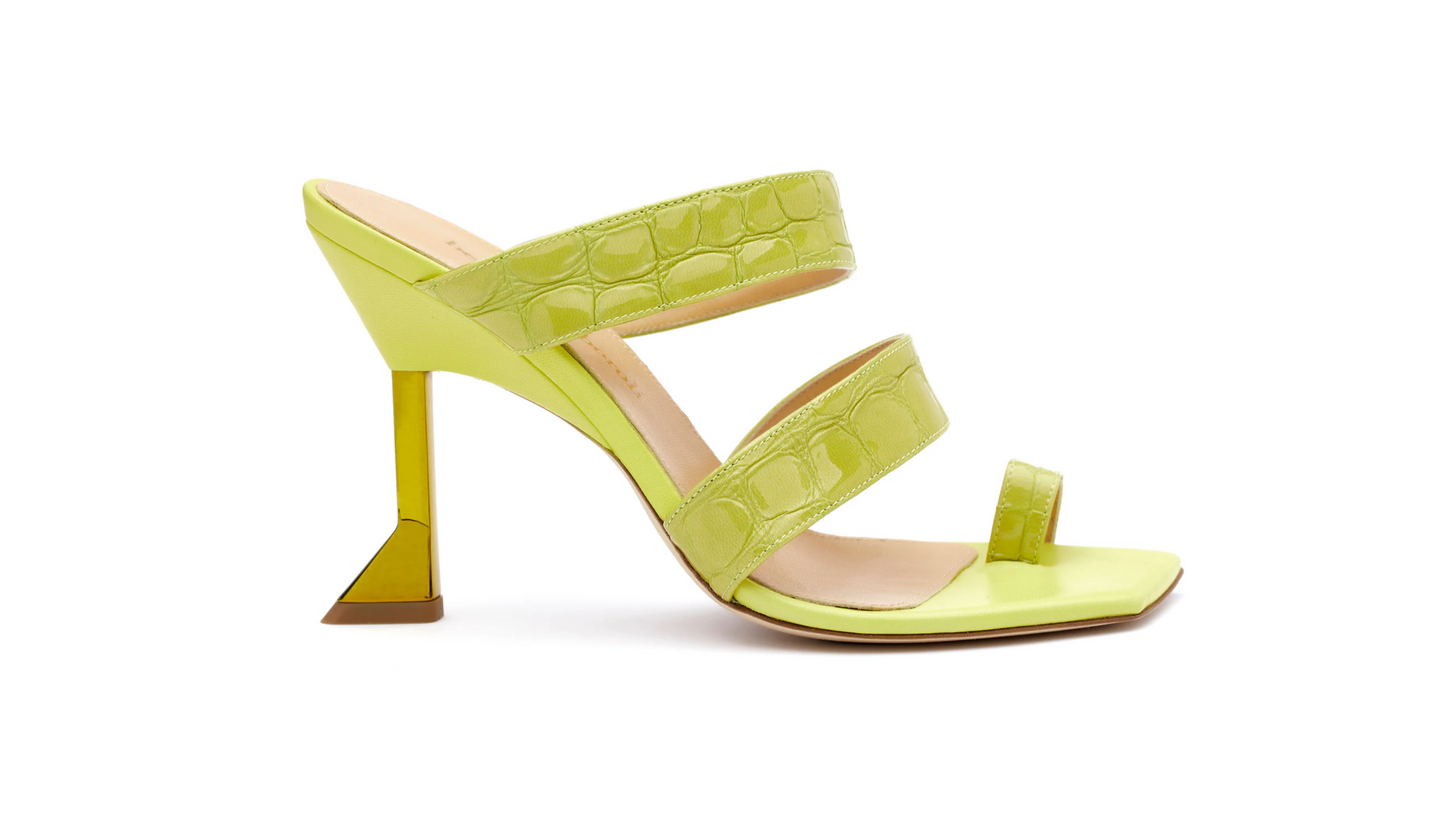 90mm 높이의 기하학적 웨지 힐이 샌들에 현대적인 감각을 더해줍니다.