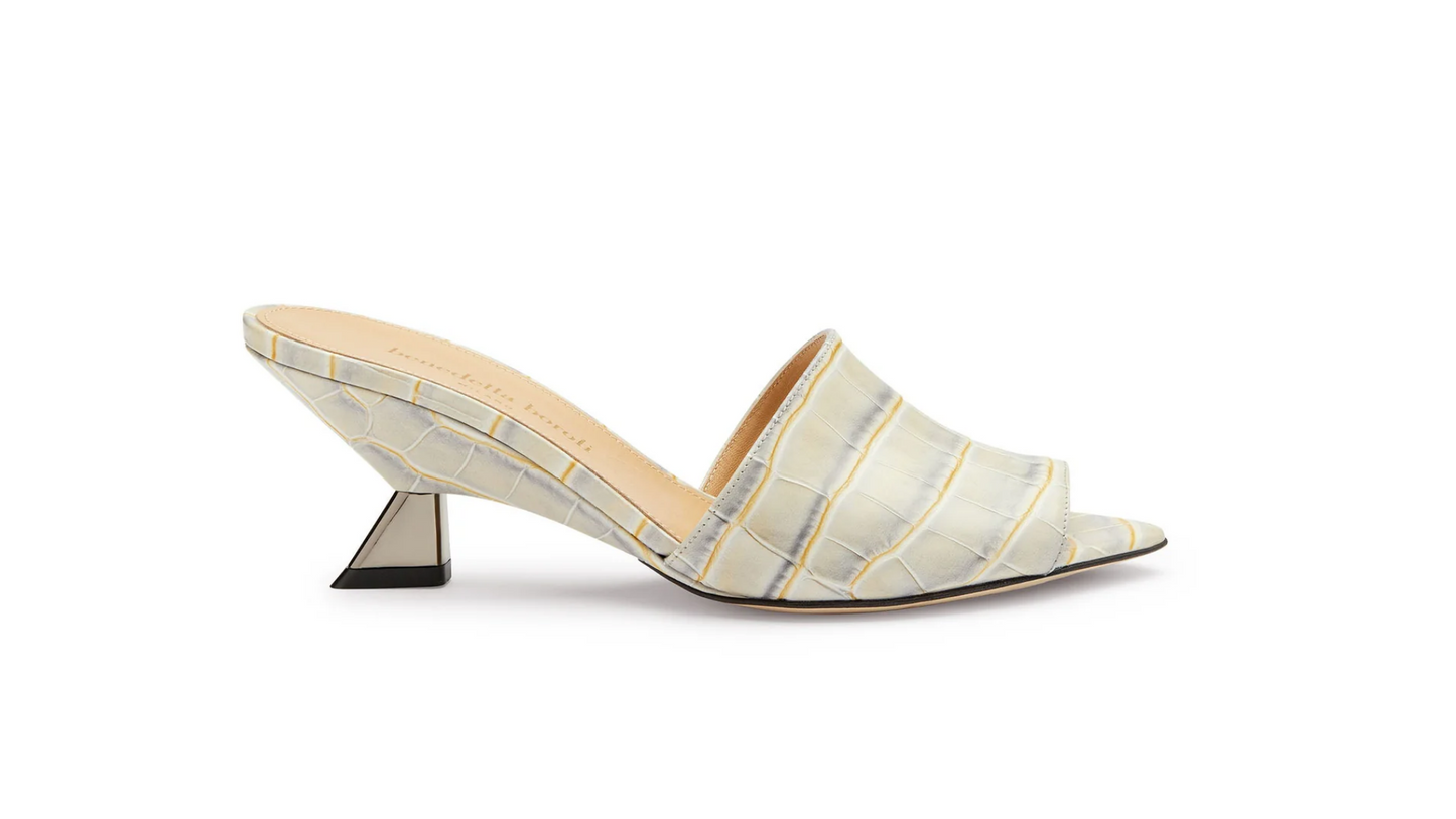 얕은 네크라인은 발가락을 살짝 드러내어 완전히 노출되지 않도록 합니다.