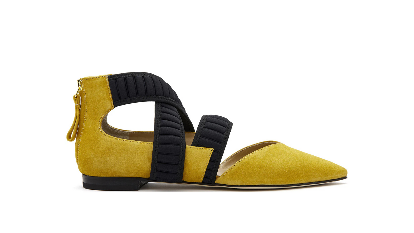 La ballerina di lusso che evoca la modernità del design composito e il brio della nuance vivace. La femminilità della forma allungata, il comfort del tacco basso.
