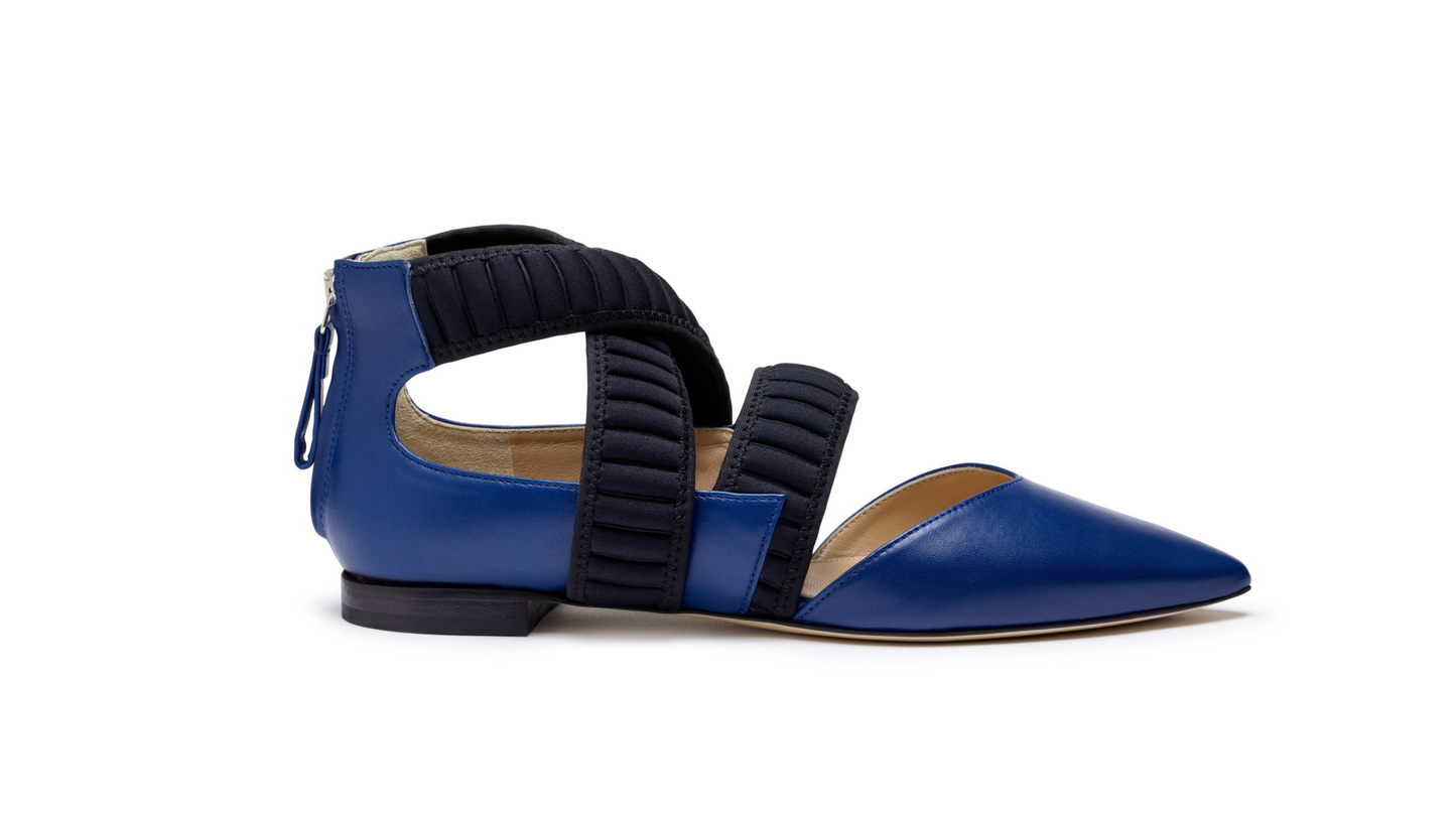 La ballerina di lusso che evoca la modernità del design composito e il brio della nuance vivace. La femminilità della forma allungata, il comfort del tacco basso.
