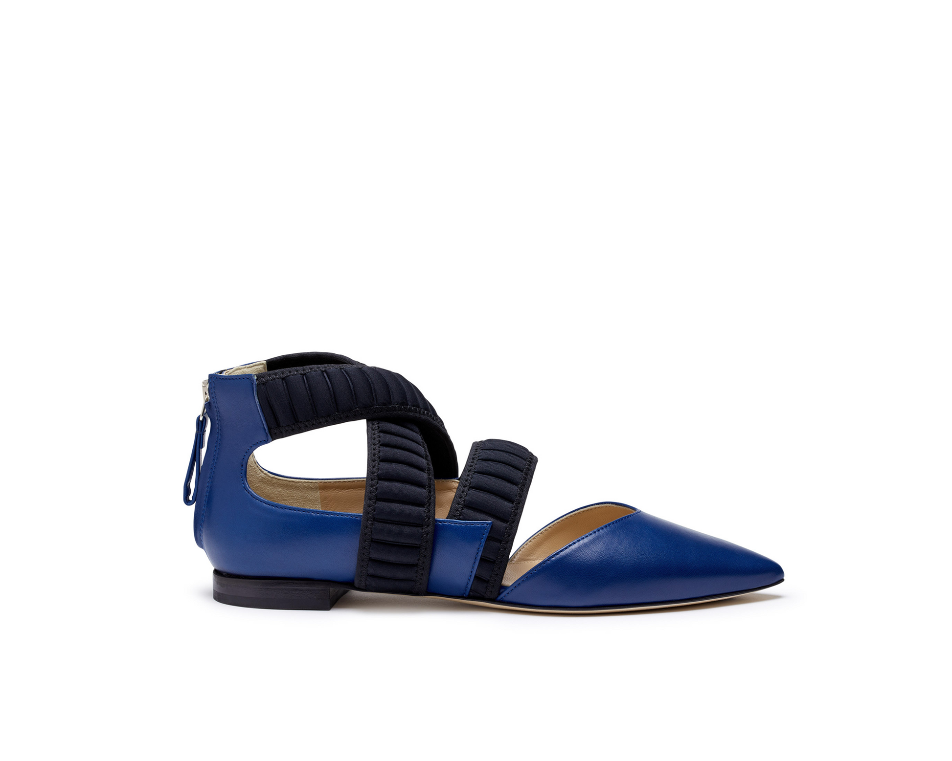 La ballerina di lusso che evoca la modernità del design composito e il brio della nuance vivace. La femminilità della forma allungata, il comfort del tacco basso. Audacia per l’occasione ed eleganza per ogni giorno.