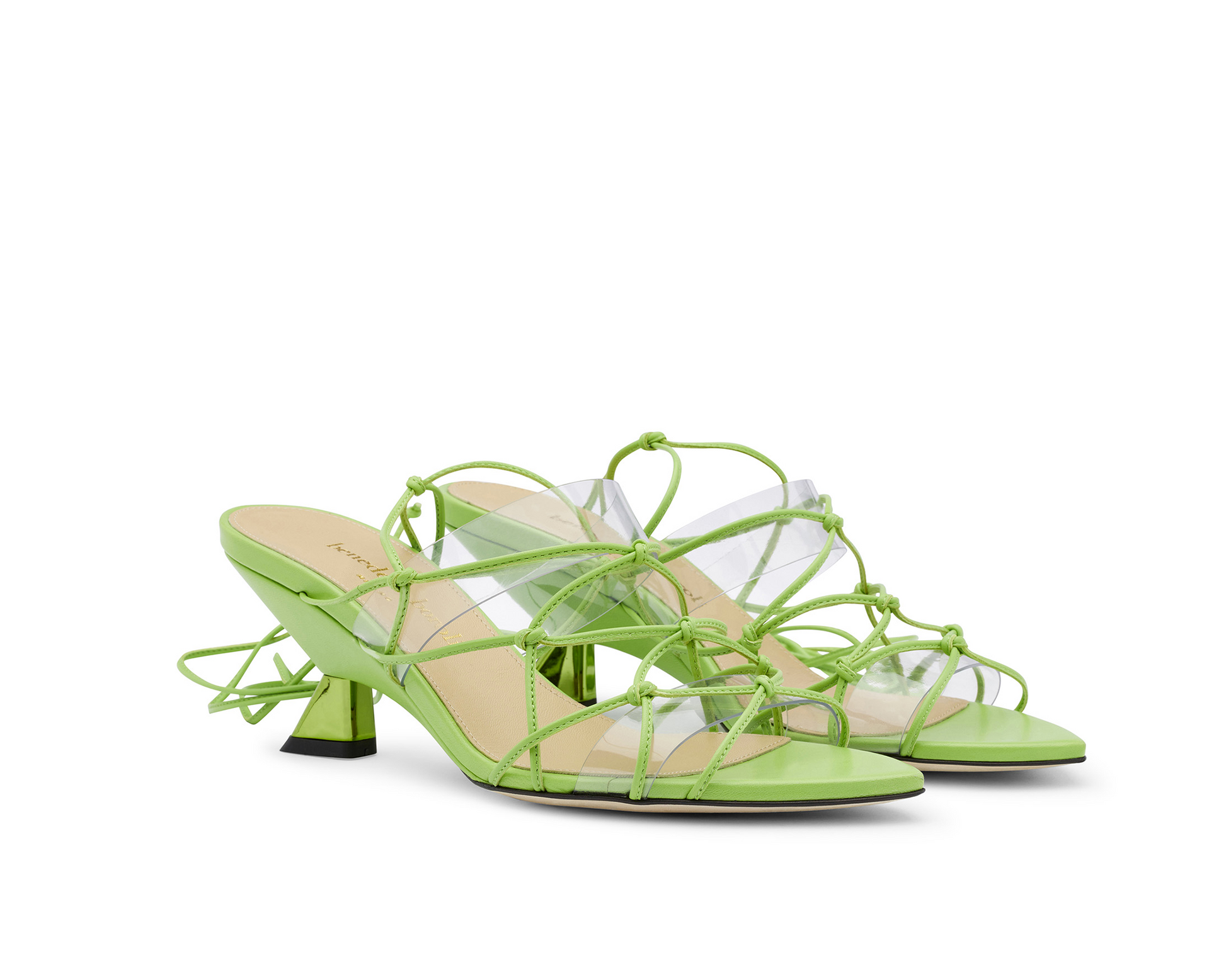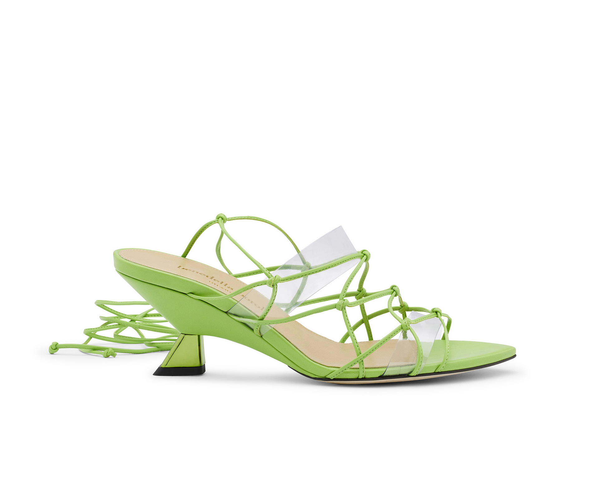 Il sandalo da donna Olga verde fluo è perfetto per eventi mondani e serate danzanti. Il suo inconfondibile design è reso affascinante dai sottili laccetti in pelle che, formando un gioco di nodi, conferiscono alla scarpa lo stile dell'antica Grecia. Le fasce in PVC permettono al sandalo di indossarlo con praticità, senza dover allacciare e aggiustare i lacci a ogni calzata. Inoltre, permettono al piede di non perdere la sua silhouette grazie alla loro funzione contenitiva.