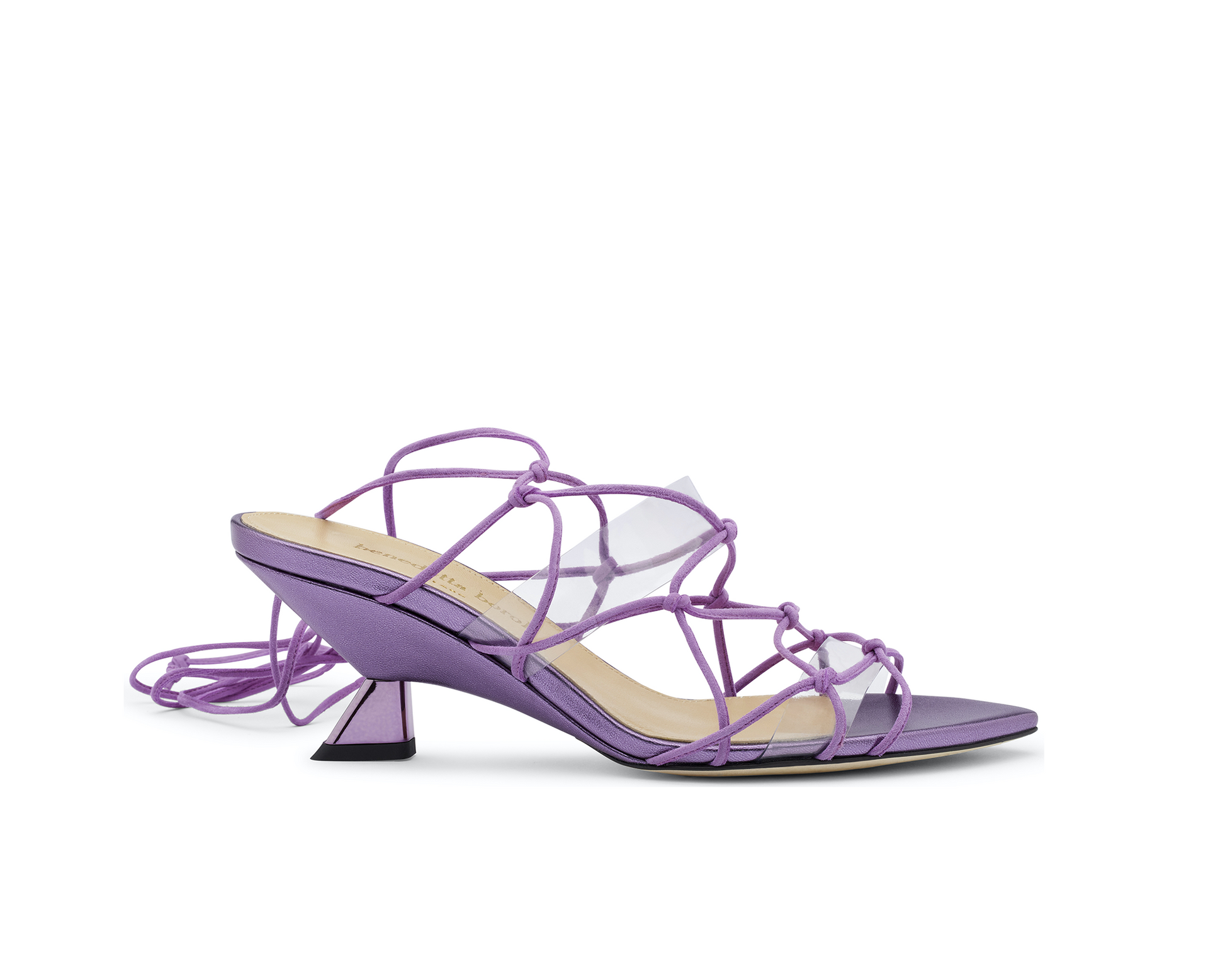 Il sandalo da donna Olga lilla è perfetto per eventi mondani e serate danzanti. Il suo inconfondibile design è reso affascinante dai sottili laccetti in camoscio che, formando un gioco di nodi, conferiscono alla scarpa lo stile dell'antica Grecia. Le fasce in PVC permettono al sandalo di indossarlo con praticità, senza dover allacciare e aggiustare i lacci a ogni calzata. Inoltre, permettono al piede di non perdere la sua silhouette grazie alla loro funzione contenitiva.