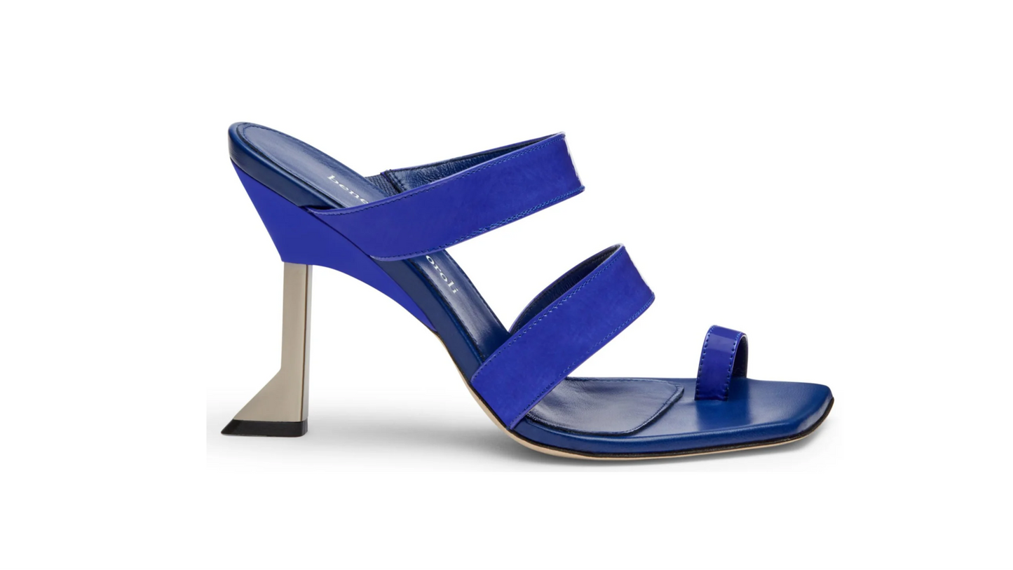 Il tacco zeppa geometrico di altezza 90mm conferisce al sandalo il giusto look in chiave contemporanea.