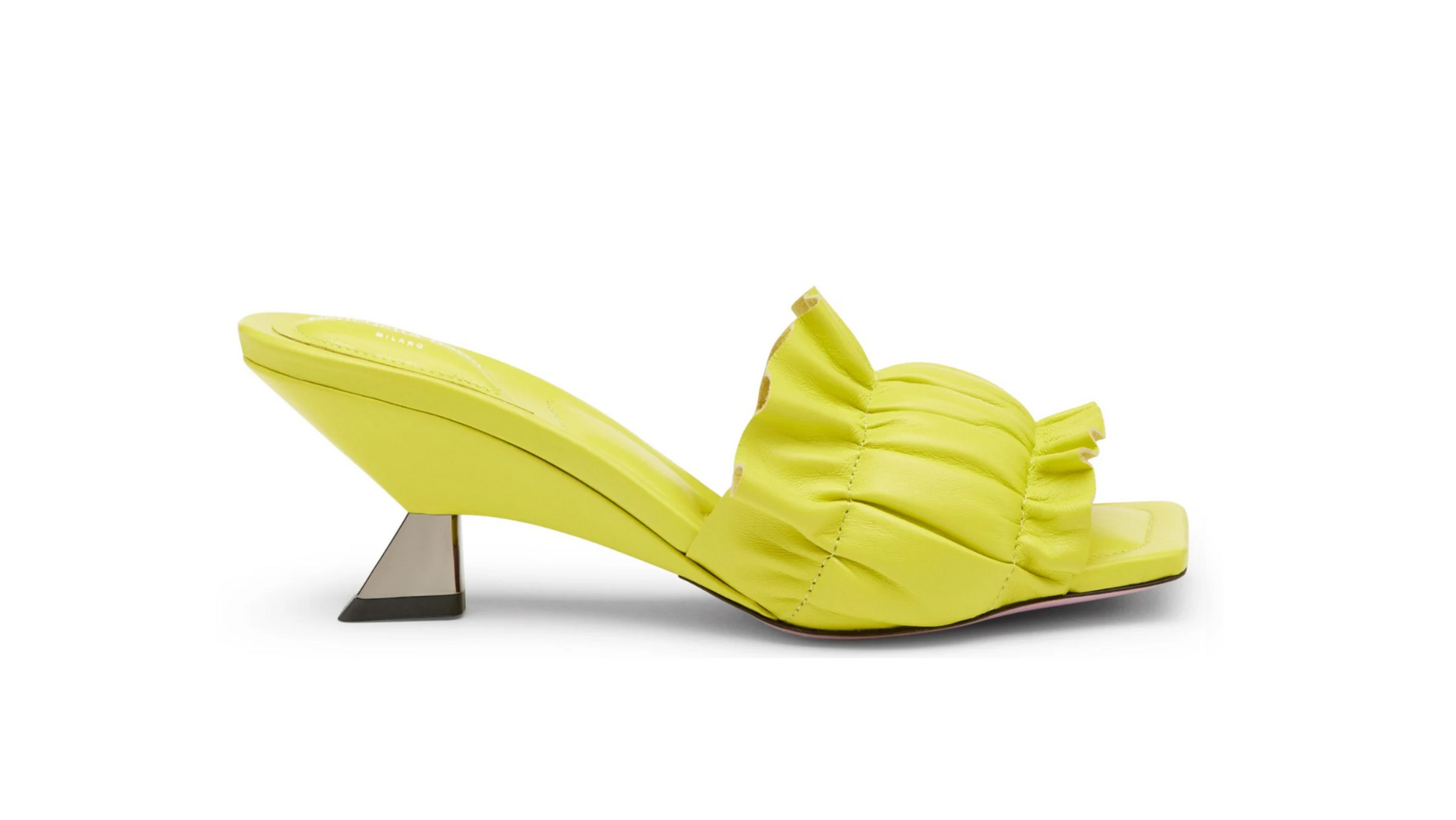Sandalo in nappa Margarita con dettaglio volant e fascia puffy. La silhouette elegante e femminile si abbina all’iconico tacco zeppa alto 65 mm, mentre il sottopiede imbottito garantisce comfort prolungato. Il volant aggiunge movimento e la fascia puffy un tocco moderno e frizzante, reinterpretando un modello classico con un design contemporaneo.
