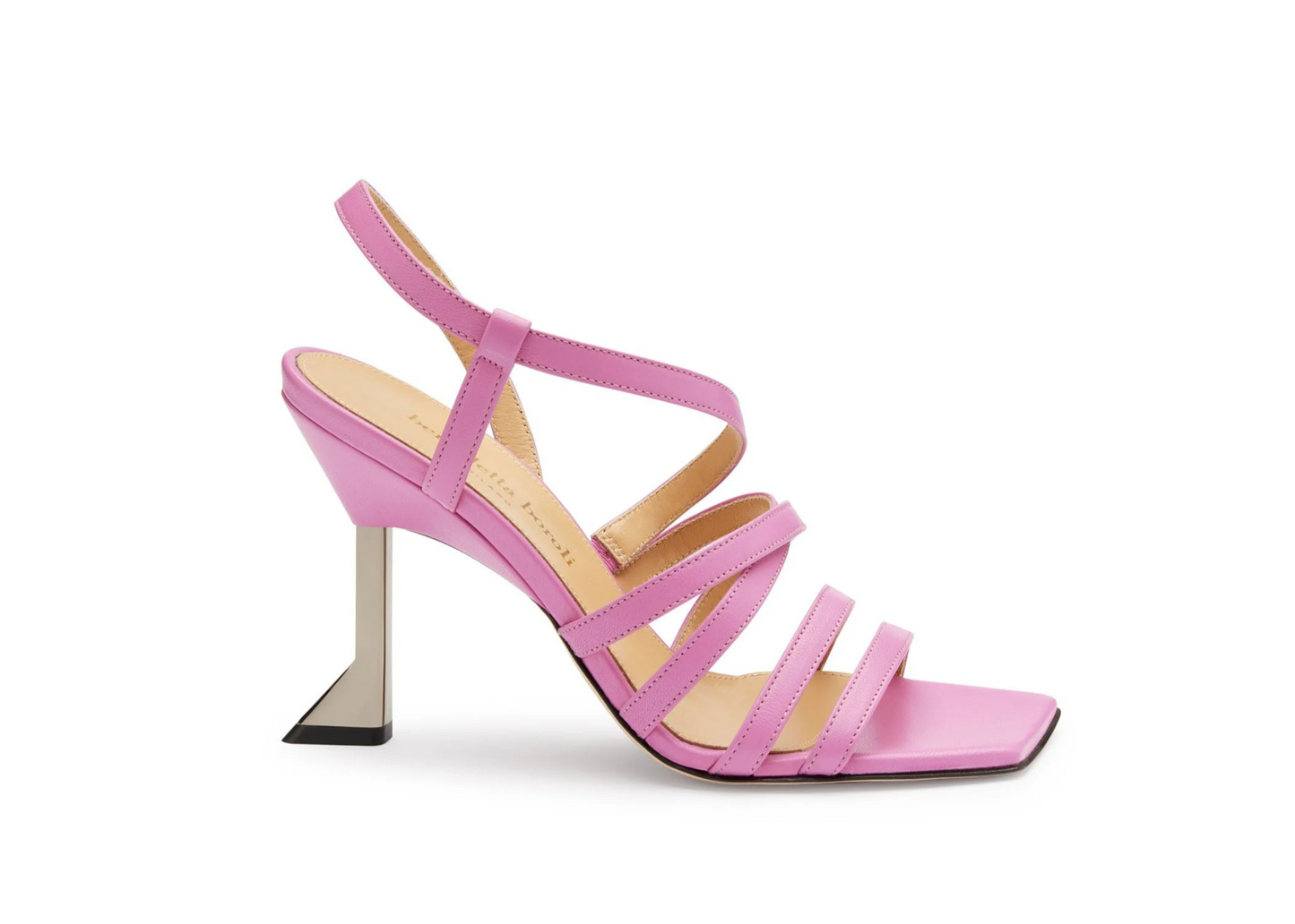 Il sandalo Hera in nappa taffy pink è caratterizzato da una punta quadrata confortevole e da lacci che avvolgono delicatamente il collo del piede. Il gioco ad onda che avvolge la caviglia slancia la figura, mentre il piccolo elastico permette una calzata confortevole.