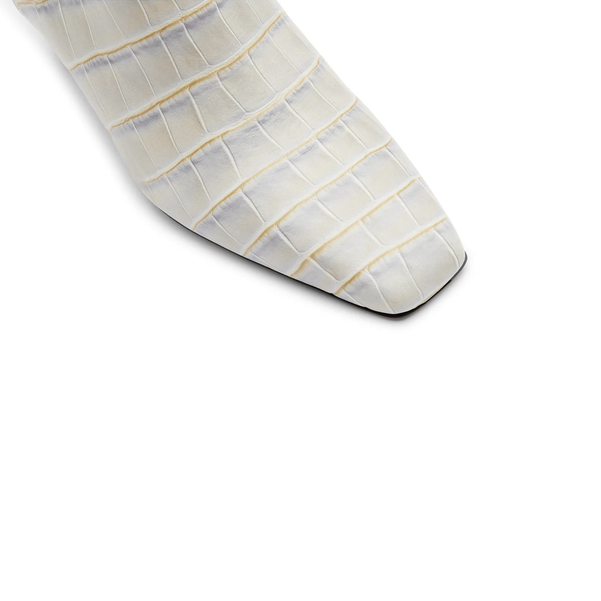 Stivaletto in stampa cocco Iris con punta quadrata e tacco zeppa da 65 mm, pensato per un’eleganza moderna e disinvolta. La chiusura con zip laterale assicura una calzata pratica e confortevole, mentre la zeppa conferisce equilibrio e slancio alla silhouette. Un modello dal carattere deciso che combina design contemporaneo, comfort quotidiano e stile senza tempo.