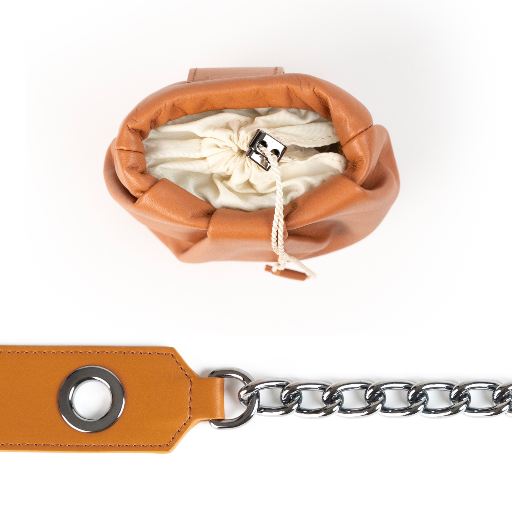 Benedetta Boroli reinterpreta l’idea di borsa con un accessorio trasformista, modulare e 100% Made in Italy. Questa versione unisce la cintura alla pochette S, la più compatta della linea, per un equilibrio perfetto tra praticità e stile. Realizzata in morbida nappa Cammello con interni in rete tecnica, mantiene l’essenzialità del design e la funzionalità tipica del brand.