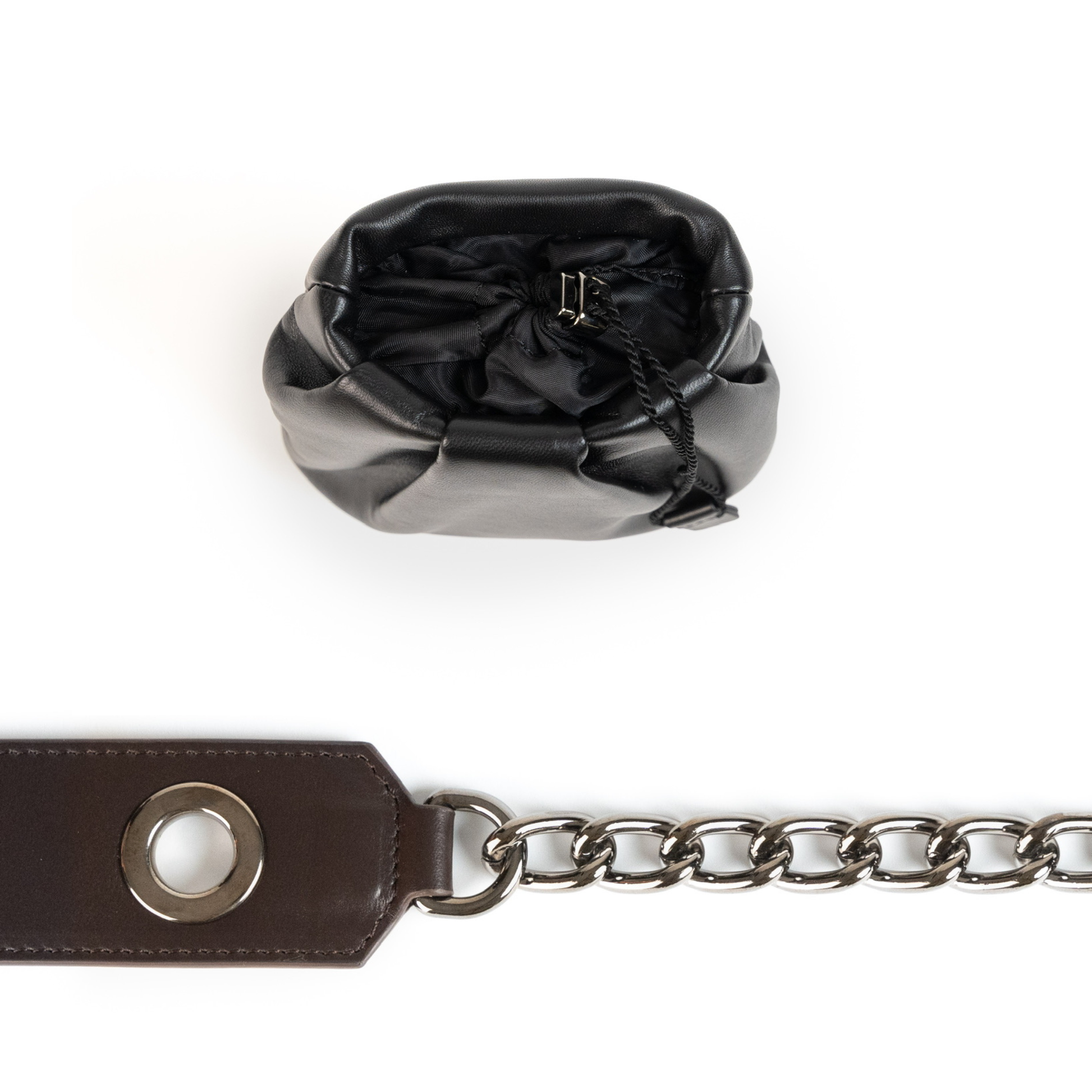 Benedetta Boroli reinterpreta l’idea di borsa con un accessorio trasformista, modulare e 100% Made in Italy. Questa versione unisce la cintura alla pochette S, la più compatta della linea, per un equilibrio perfetto tra praticità e stile. Realizzata in morbida nappa Nero con interni in rete tecnica, mantiene l’essenzialità del design e la funzionalità tipica del brand.